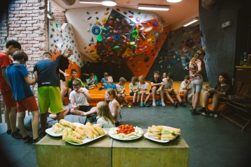 Mezi 8:30 - 9:00 příchod dětí k nám do Lokal Bloku. Dopolední program probíhá na stěně - hry, soutěže, bouldrování atd. V průběhu dopoledne dostanou děti svačinu a kolem 12h oběd v restauraci. Po obědě následuje odpočinek a klidové hry, odpoledne se děti přesunou na odpolední aktivitu, která většinou probíhá mimo Lokal Blok. Aktivity jsou vybírány dle počasí a aktuální nabídky. Kolem 16:00 hodiny se děti vrací zpět do Lokal Bloku, kde si je můžete vyzvednout, nejpozději však v 17:00 kdy náš program končí.